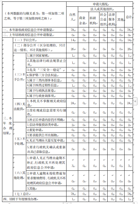 进一步探索完善依申请公开接收、登记、办理、答复、归档流程,2024年,全县各部门共办理政府信息公开申请78件。