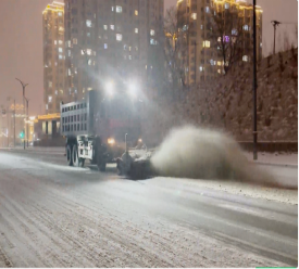 11月21日、26日双鸭山市气象台发布道路冰雪黄色预警和重大气象灾害预警。环卫服务中心提前部署、部门联动,按照先重点、后延伸、全覆盖的工作原则,采取边下边清、昼夜不停循环作业方式,确保道路畅通和出行安全。
