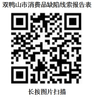 消费者反映消费品缺陷线索,也可填写《双鸭山市消费品缺陷线索报告表》(见下方二维码)。