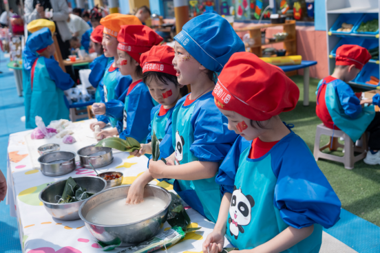 幼儿园展示的自主游戏成果精彩纷呈:幼儿化身“小小艺术家”,以陶土、布料、扎染等材料创作创意作品;变身“小小厨神”,用面团、糯米、水果等食材制作美食;成为“运动健将”,借助安吉梯、滚筒等器械挑战体能。在“冒险、投入、喜悦”的游戏体验中,孩子们生动诠释了“生活即教育”的理念。