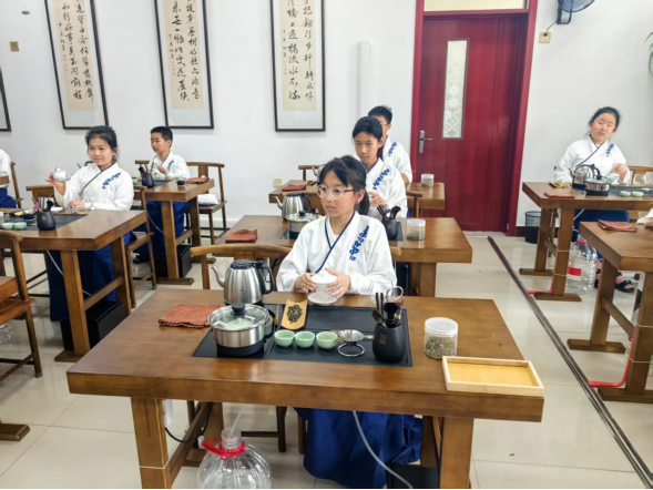 活动围绕科学实践、思维思辨、劳动体验、传统文化四大主题,精心设计《茶韵留香》《密室寻宝》等六门特色课程。《茶韵留香》串联历史、地理与美学,让学生在茶叶演变中感受文化传承,在茶席设计中激发创造力;《密室寻宝》融合数学逻辑与化学知识,以解谜任务培养学生逻辑思维;《美味三明治》通过烹饪制作进行劳动实践,提升劳动素养;《绿脉行动》通过盆栽种植与装饰,将生物知识、物理现象转化为实践成果。《智取王位》《玩转思维》借助棋类游戏与学具操作,锻炼学生逆向思维与数学逻辑能力。