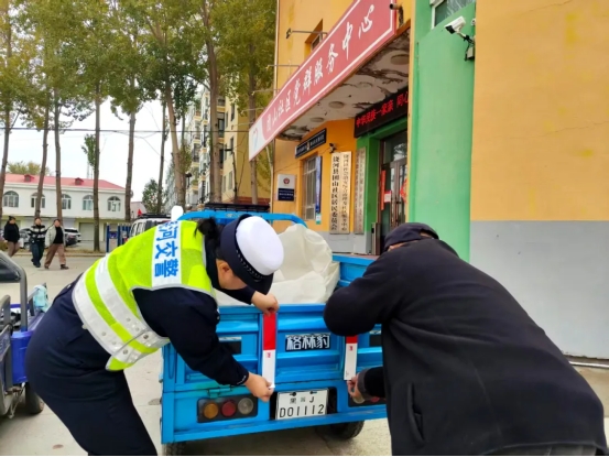 民警在走访中发现,许多老年人代步使用的电动三轮车、人力三轮车缺少必要的安全反光装置,在黎明、黄昏或夜间光线不佳的条件下行驶存在隐患风险。为此,民辅警随身携带反光标识贴,现场为老人们停放的车辆进行免费粘贴,叮嘱老人“被看见,才安全”。