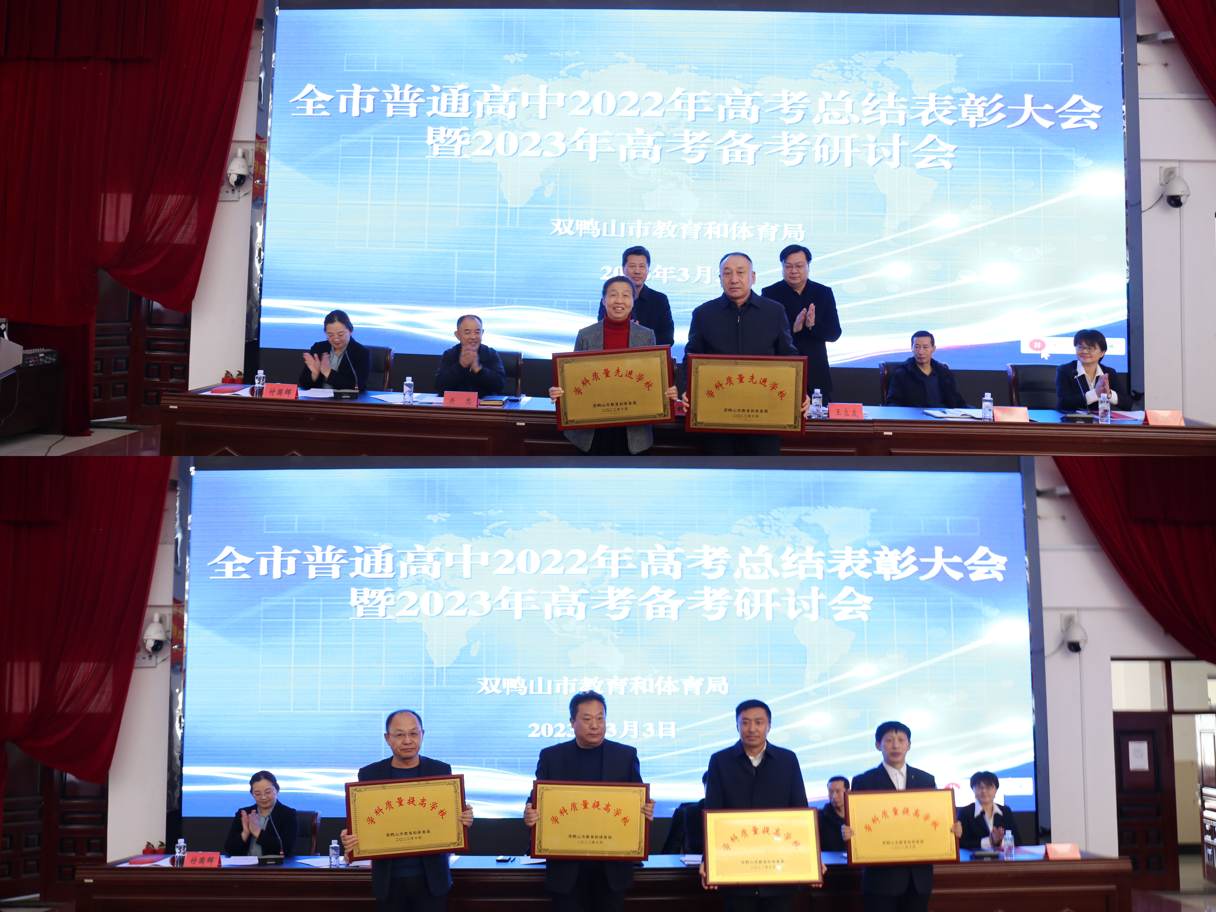 会议由两部分组成:全市普通高中2022年高考总结表彰大会和2023年高考备考研讨会。