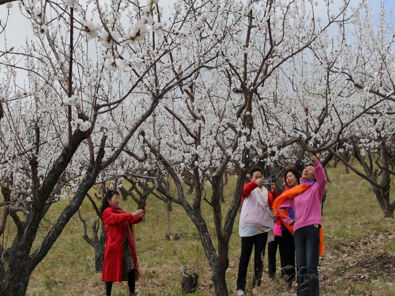 记者在庄园村看到,前来观赏杏花的人特别多,从山上到山下车辆排成了长龙。伴着杏花的芬芳,一家老小、亲朋好友三五成群地在杏花树下留念拍照,眉宇间传递着春天带来的愉悦,欢乐的笑容与杏花的美景汇成一幅春意盎然的画卷。
