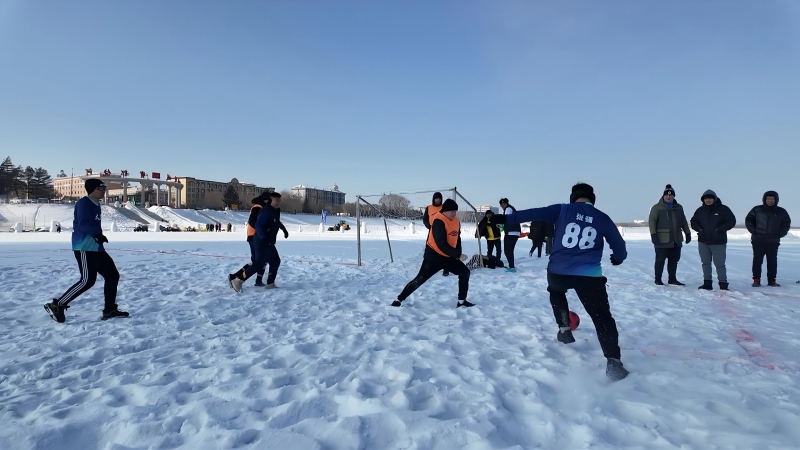 赛场上,中俄球员身着专业保暖装备,脚踩防滑钉鞋,在白雪覆盖的赛场上疾驰穿梭。凛冽寒风裹挟着雪粒扑面而来,却丝毫挡不住球员们的竞技热情。抢断时的迅猛卡位、传球时的精准预判、射门时的凌空爆射、扑救时的飞身拦截,每一个动作都扬起雪沫腾空而起,力量与技巧的碰撞、速度与默契的考验,在皑皑白雪的映衬下,勾勒出一幅充满激情与张力的竞技画卷。中国队员孙洋表示:“雪地足球场地阻力非常大,天气也很寒冷,但是能跟俄罗斯足球运动员同场竞技,大家都充满热情,特别是在饶河家门口举办赛事,我觉得非常有意义,希望每年都会举办这样的比赛,我也会积极参与。”俄罗斯队员萨沙说:“我们非常喜欢踢足球,感谢中国的邀请,祝大家越来越好。”