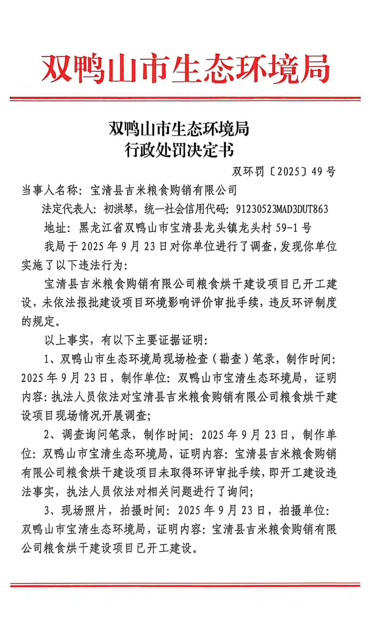 双环罚 [2025] 49号