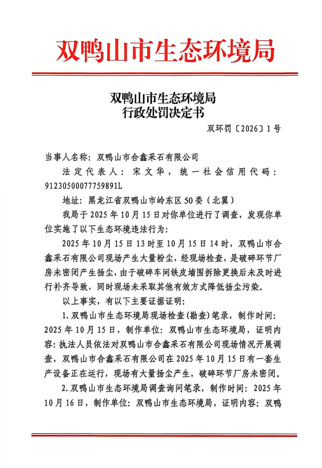 双环罚[2026]1号